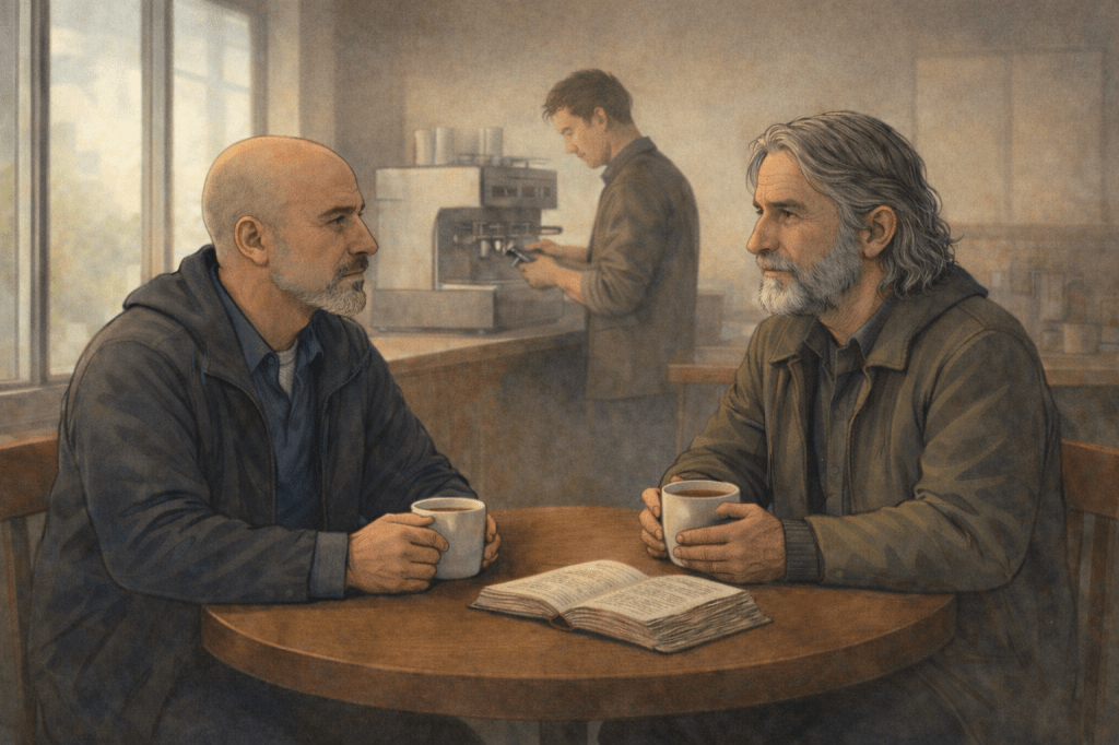 The café “Dilema” was packed. We were standing in line for coffee, both of us a little tired, at an age that no longer bothered to hide — not from others, and not from ourselves. I noticed the man in front of me absentmindedly shifting coins in his hand, as if their order mattered more than the drink he was about to order. When he realized it was his turn, he startled.